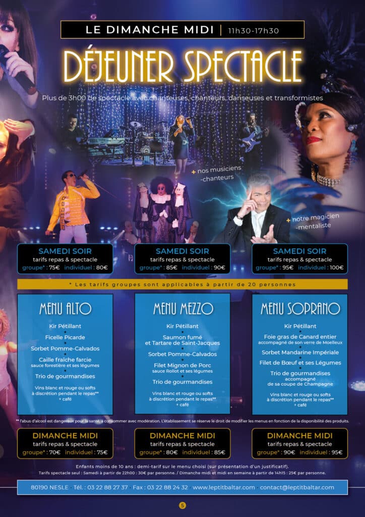 TARIFS DE GROUPE et INDIVIDUEL (Boissons comprises)